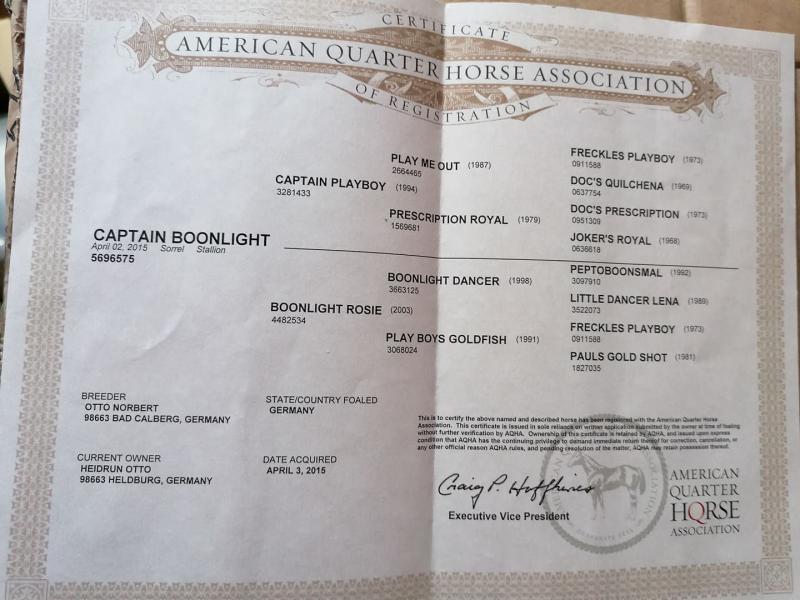 Captain wurde schonend durch Katharina Stötzner von der Main Ranch in Miesitz angeritten. Derzeit befindet er sich im Cutting Training bei Monique Jablonski in Einöd.