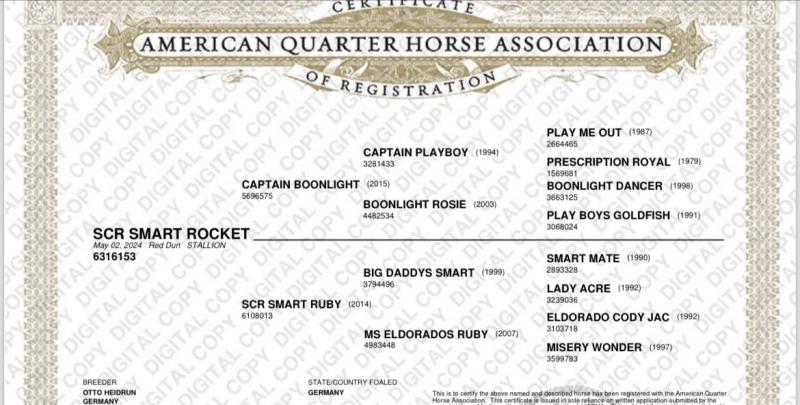 Rocket ist väterlicher- und mütterlicherseits Cutting (Peptoboonsmal/ Smart Little Lena) gezogen.